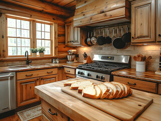 Butcher block is the most rustic-looking material, and like some other materials, requires regular sealing and maintenance. Think about aesthetics and style by selecting materials that enhance the rustic, natural, and cozy feel of the cabin. Balance with the surroundings by selecting materials that complement, not compete with, the natural wood grain of your cabin's walls, floors, and cabinets. Laminate is a budget-friendly option for rustic, low-maintenance, or vacation homes or copper for higher-end cabins.